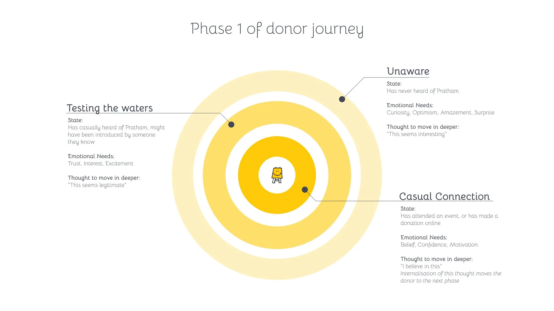 Thinking about the touchpoints that exist with the Pratham donors and how the team builds those touchpoints/ how much effort is needed to maintaining information on each of the touch point was our next point of action.